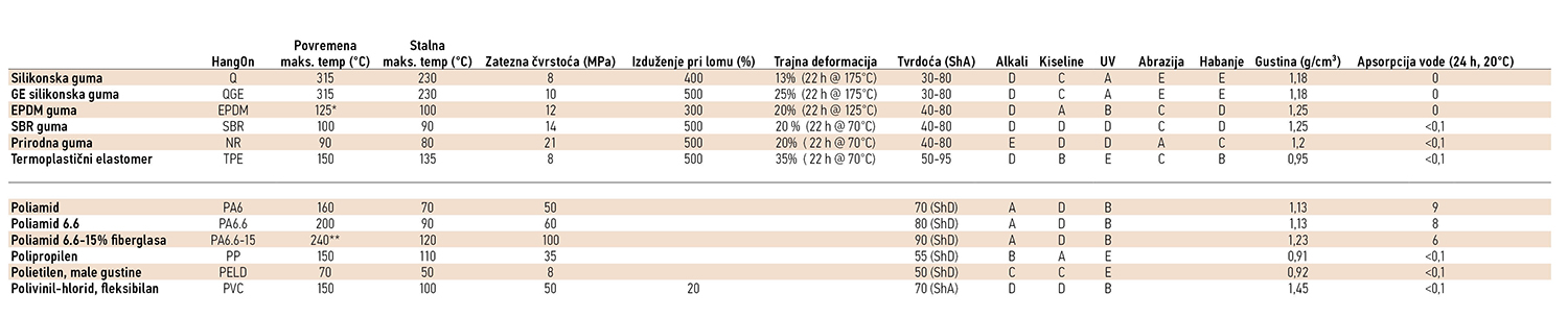 ** Termoplastični materijali kao poliamid zapravo počinju da se tope na približno 160°C ali se mogu stabilizovati na nekoliko načina, npr. mešanjem sa fiberglasom.