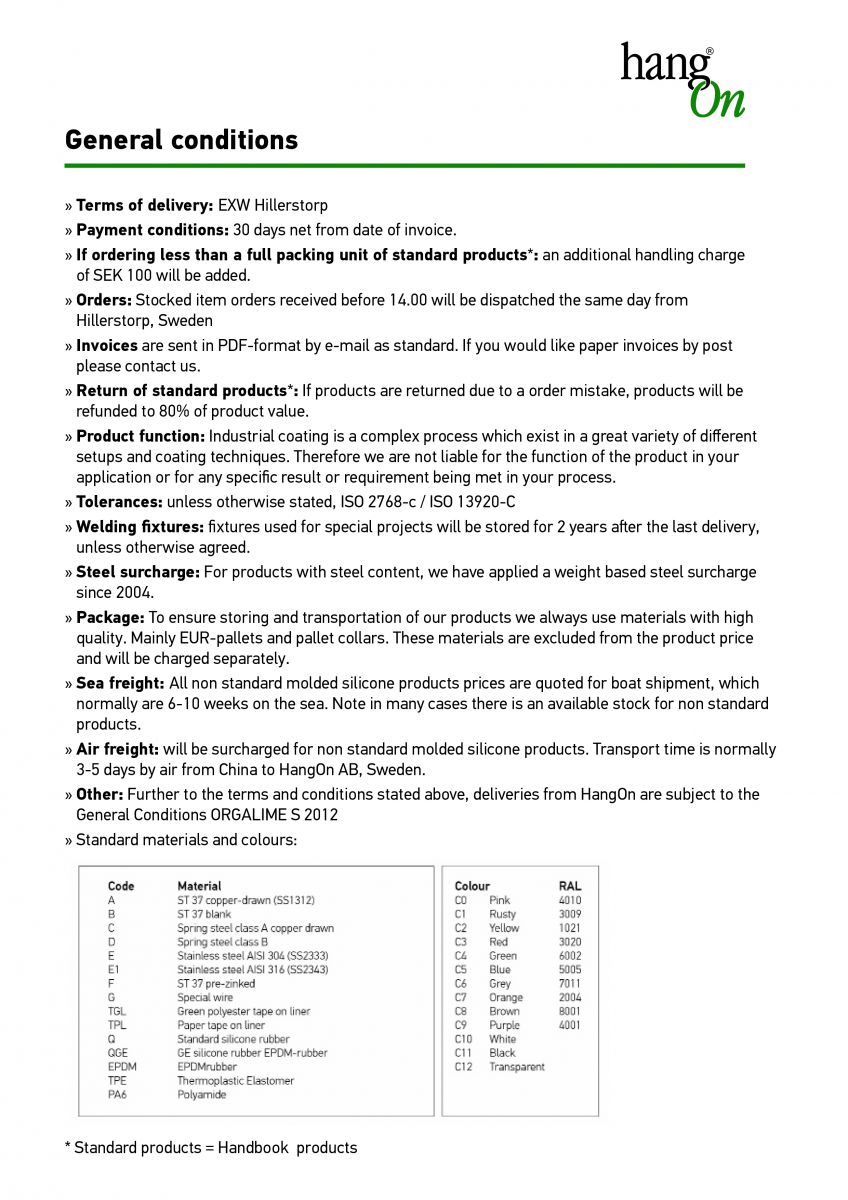 » Other: Further to the terms and conditions stated above, deliveries from HangOn are subject to the General