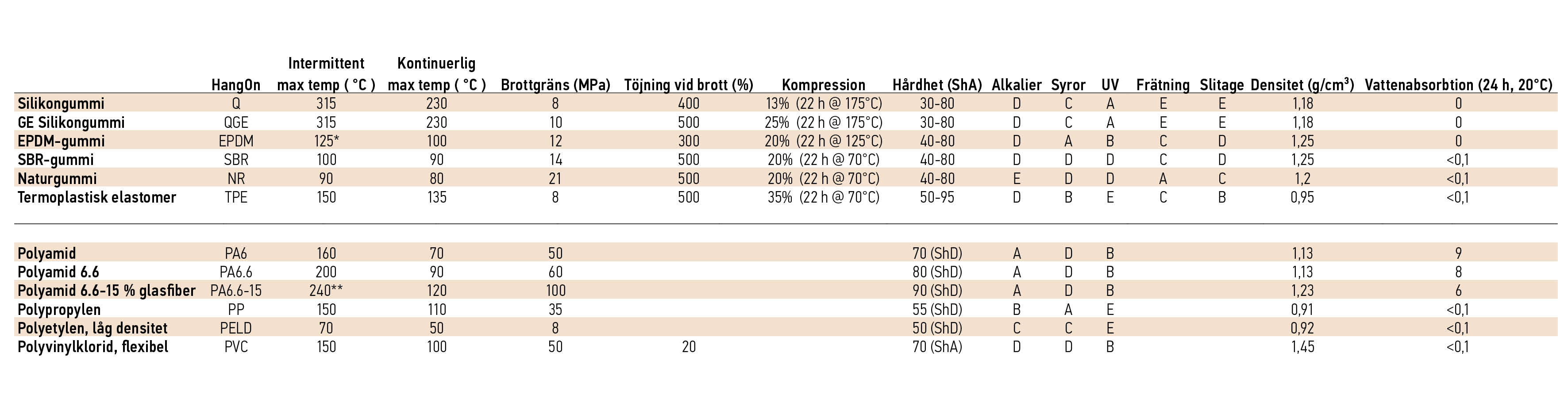 ** Termoplaster som PA börjar smälta vid ca 160° C men kan stabiliseras på olika sätt, t ex genom att blanda i glasfiber.