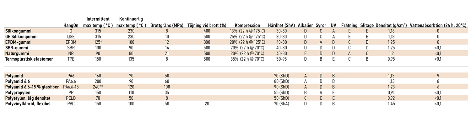 * Vid pulverlackering kan vissa material bara användas en gång. T ex EPDM som har en maxtemperatur på 125° C men som faktiskt tål upp till ca 200° C under kortare tid. EPDM-pluggar blir hårda men smälter inte.